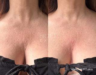 The Décolletage hiLIFT™ rejuvenates the upper chest area and helps combat the effects of aging. This treatment works to stimulate new collagen in aging, damaged and problem areas, bringing a more youthful glow to the entire area. In 30 minutes you will see: -Reduced crepiness -Reduction in deep lines -Smoother chest appearance -All over rejuvenating glow We recommend yearly touch ups to maintain results and fight the natural effects of gravity.